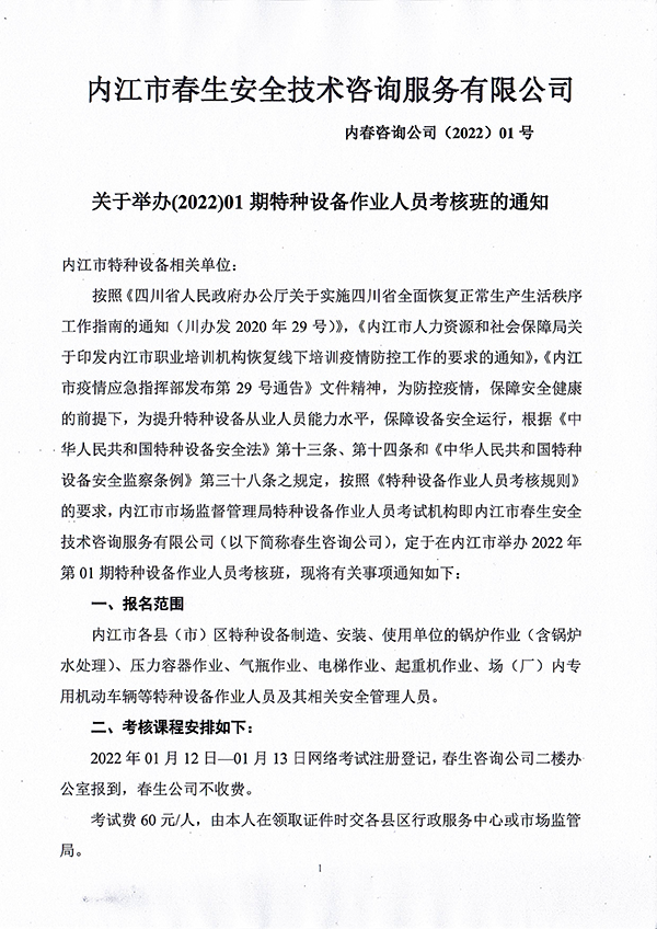 2022年春生公司01期特種設(shè)備作業(yè)人員考核班通知