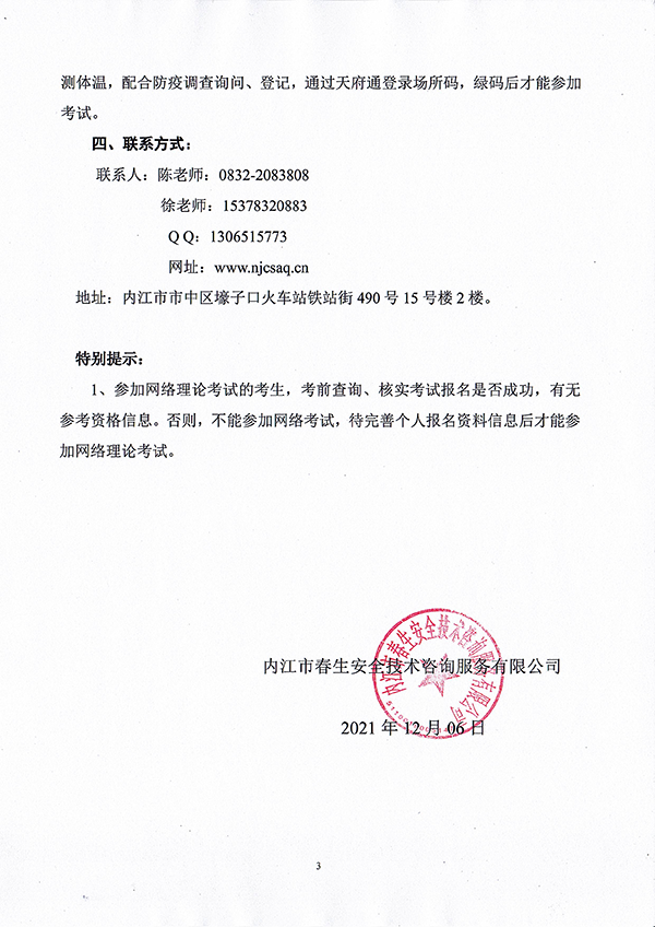 2021年春生公司06期特種設(shè)備作業(yè)人員考核時(shí)間安排