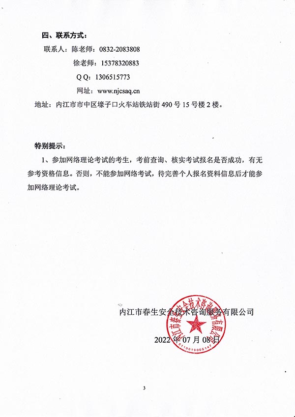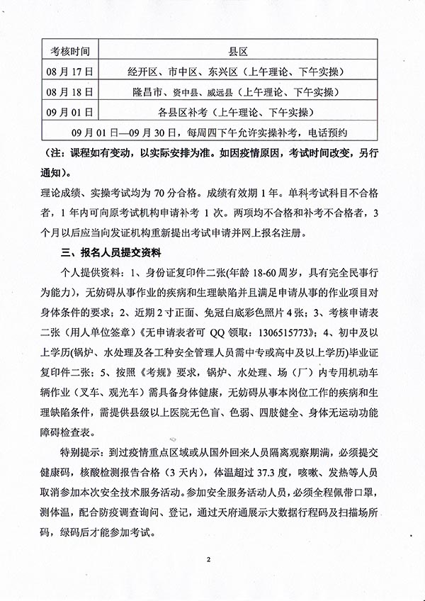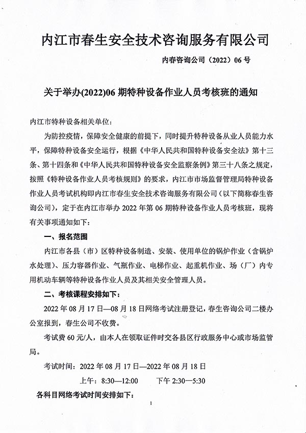 2022年春生公司06期特種設(shè)備作業(yè)人員考核時間安排