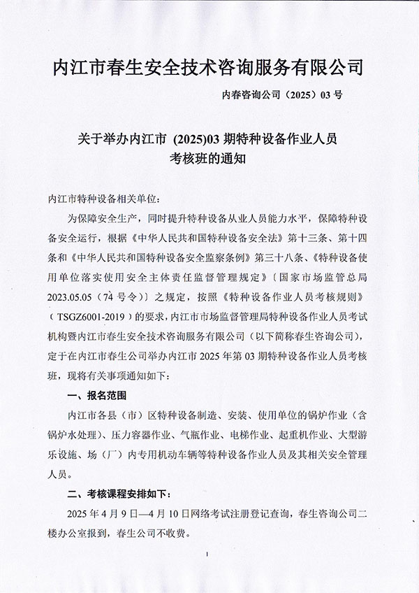 2025年春生公司第3期特種設(shè)備作業(yè)人員考核通知