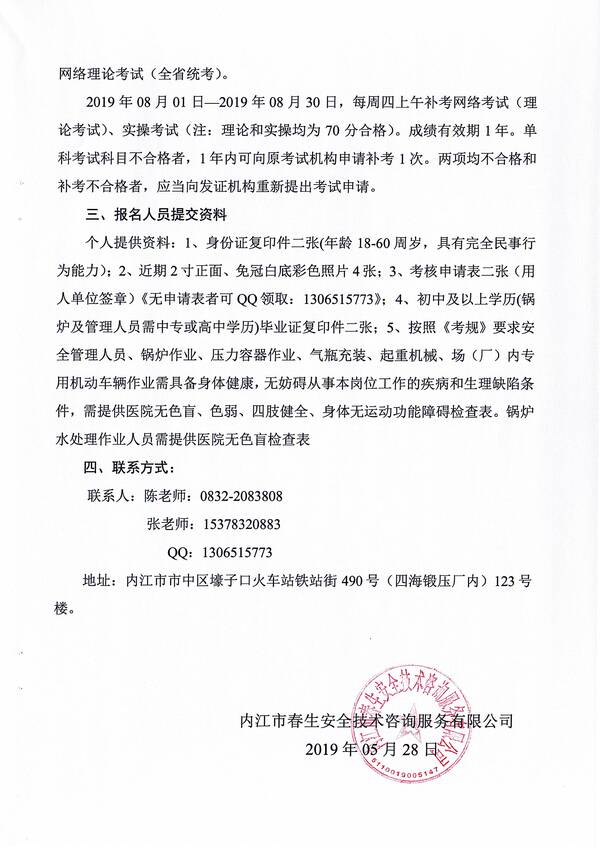 2019年第五期特種設(shè)備作業(yè)人員考核培訓(xùn)班的通知