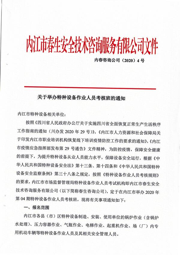 2020年春生公司05期特種設(shè)備作業(yè)人員考核班通知