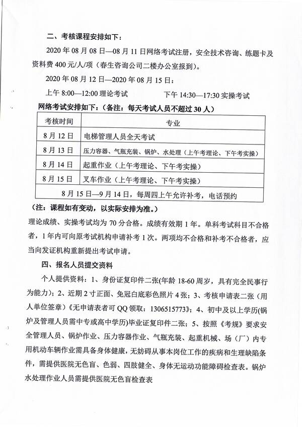 2020年第三期特種設(shè)備作業(yè)人員考核培訓(xùn)班的通知