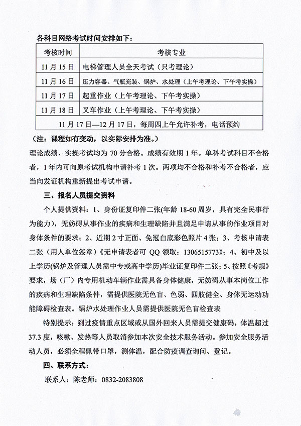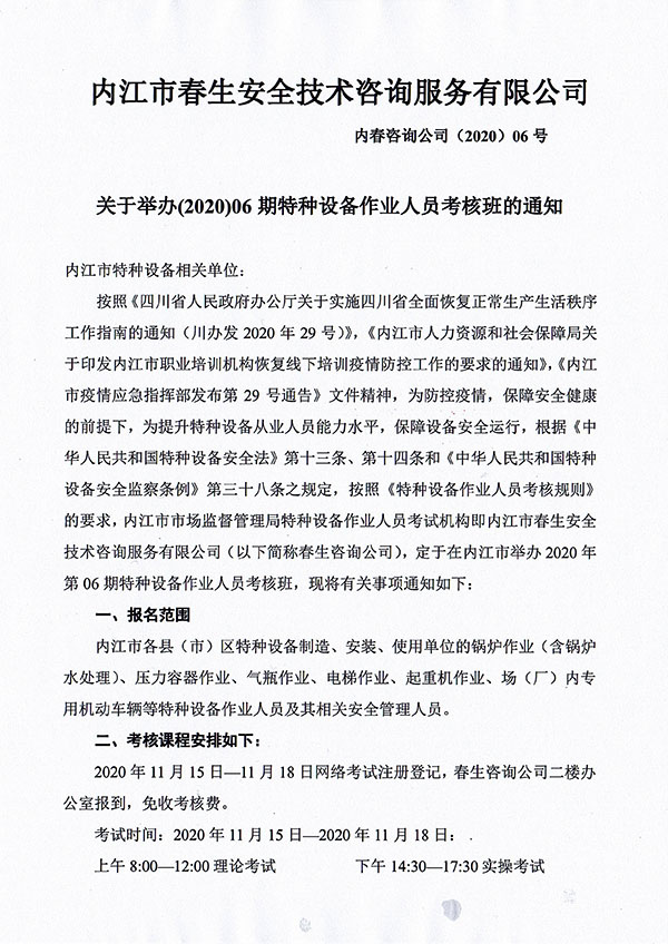 2020年春生公司06期特種設備作業(yè)人員考核班通知
