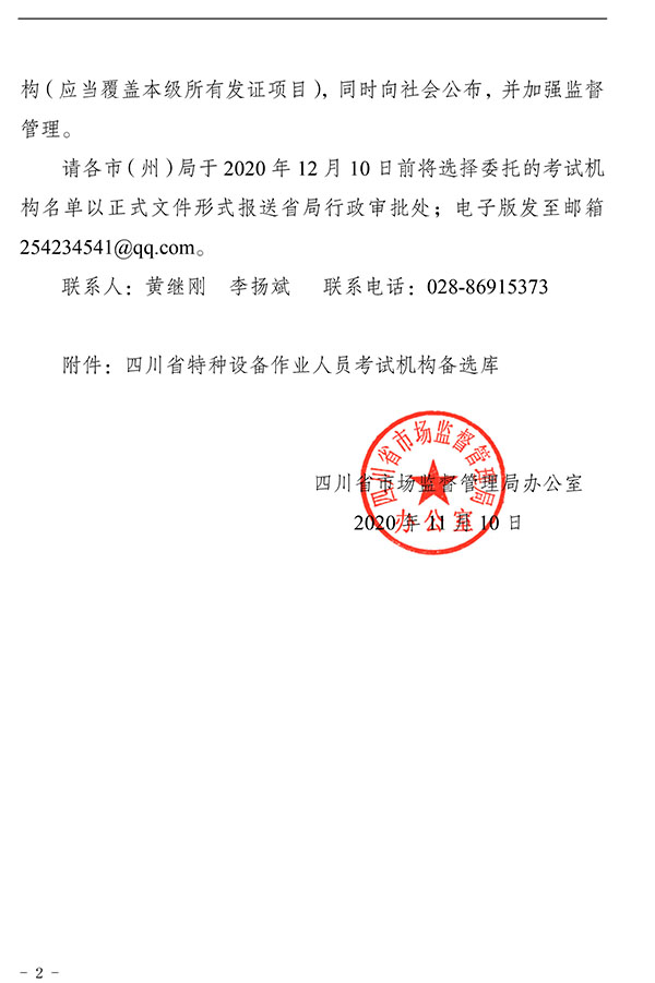 關于公布四川省特種設備作業(yè)人員考試機構備選庫的通知